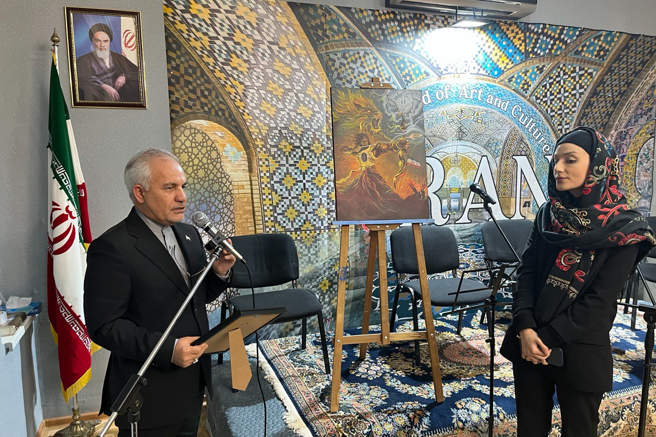 در پایان این مراسم، تابلو نقاشی توسط ایشان به سفارت جمهوری اسلامی ایران اهداء شد و از سوی سفیر لوح تقدیر و هدیه توسط رایزنی فرهنگی به ایشان تقدیم شد.