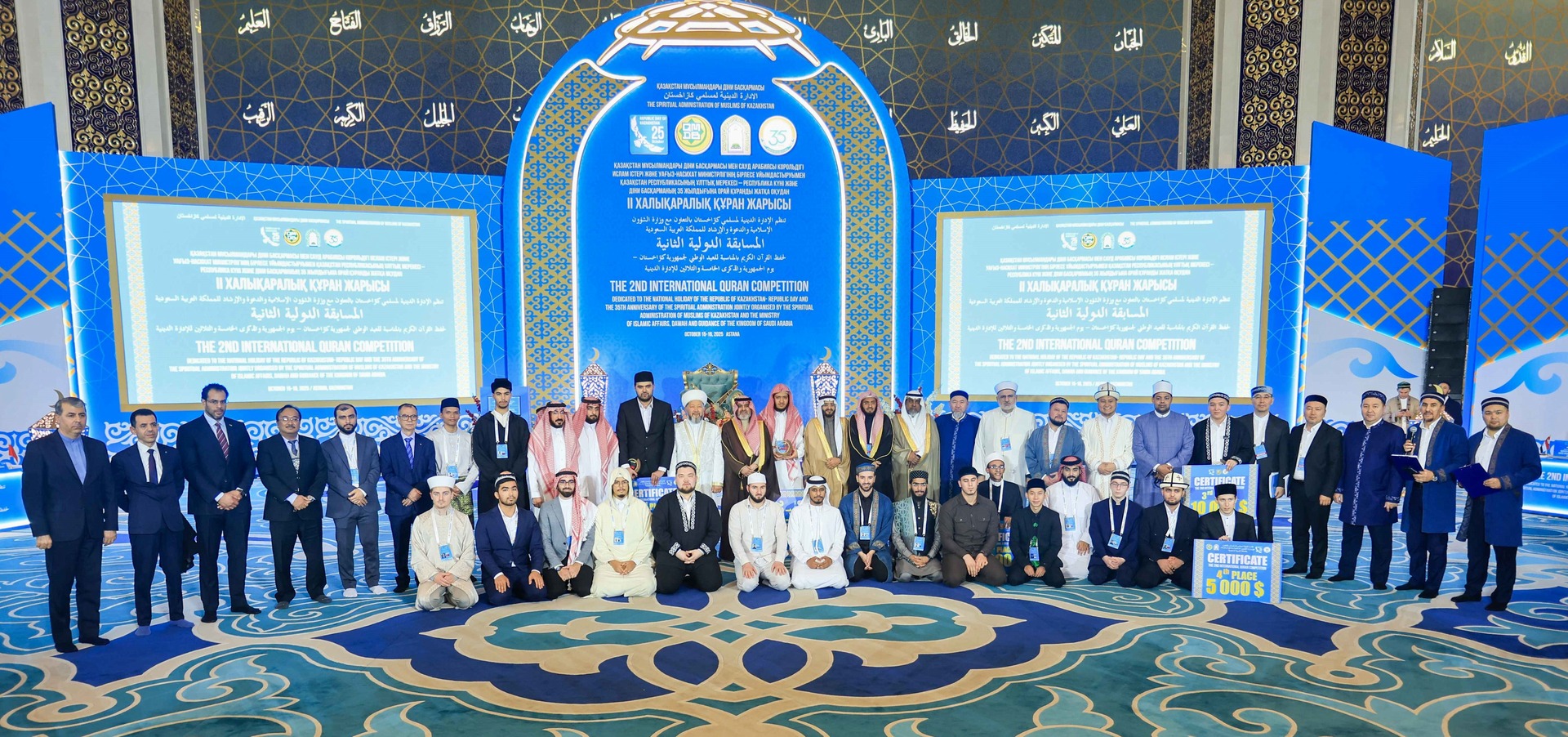 مراسم افتتاحیه دومین دوره مسابقات بینالمللی قرآن کریم (25 مهرماه) با حضور شرکت کنندگانی از ۲۱ کشور جهان از جمله، ایران، قزاقستان، ترکیه، عربستان سعودی، مصر، بحرین، قرقیزستان، مراکش، ازبکستان و ... در فضایی معنوی و با شکوه در مسجد جامع ملی آستانه، پایتخت جمهوری قزاقستان، آغاز به کار کرد.