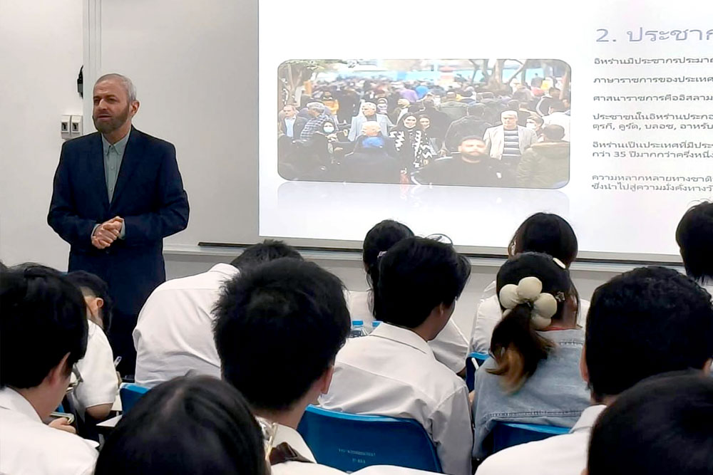 بانکوک- تایلند: در چارچوب تقویت همکاری‌های علمی، آموزشی و فرهنگی میان جمهوری اسلامی ایران و پادشاهی تایلند و به دعوت رسمی دانشکده مطالعات بین‌الملل دانشگاه سری‌ناخارین ویروت، رایزن فرهنگی ایران در این کشور به‌عنوان استاد میهمان دانشگاهی اقدام به تدریس یک جلسه آموزشی جامع با عنوان «ایران معاصر؛ کشوری در مسیر پیشرفت و تمدن نوین» کرد.