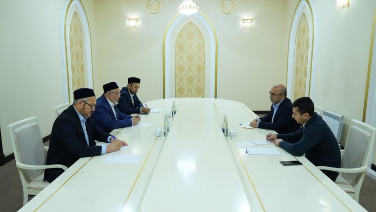 حسن صفرخانی رایزن فرهنگی جمهوری اسلامی ایران در ازبکستان و حامدجان حشمتبیکاف معاون اول مفتی و اداره امور مسلمانان ازبکستان در محل اداره امور مسلمانان ازبکستان در تاشکند دیدار و گفتوگو کردند.