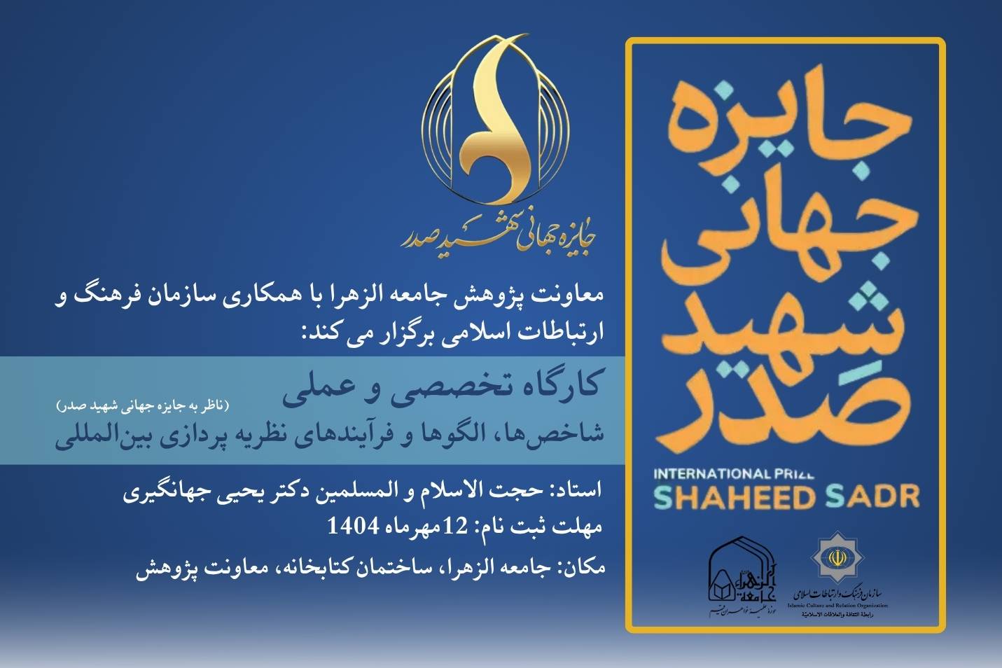 قم - ایران: کارگاه تخصصی و عملی شاخص‌ها، الگوها و فرآیندهای نظریه‌پردازی بین‌المللی ناظر به جایزه جهانی شهید صدر در محل جامعه الزهرا(س) شهر قم برگزار می‌شود.