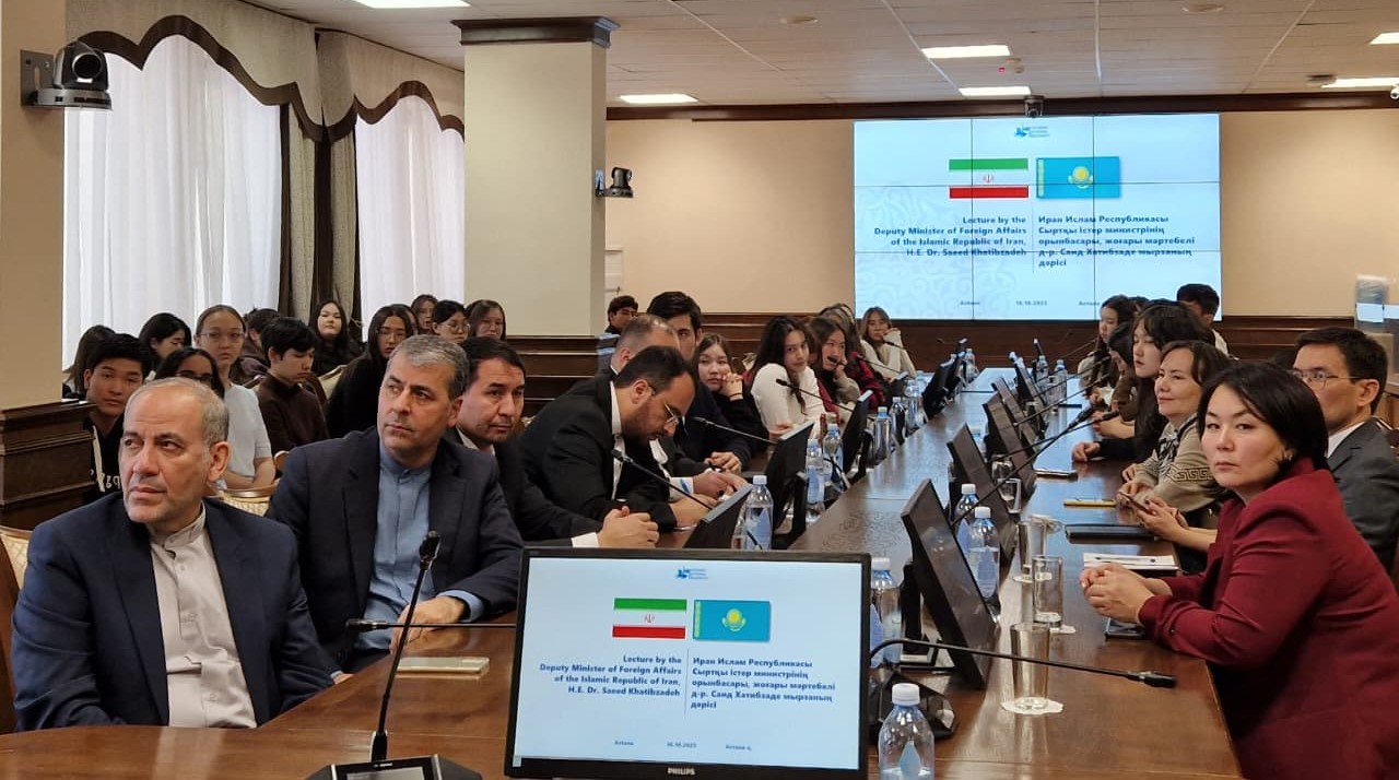 در ادامه تلاش‌های مستمر برای تقویت همکاری‌های علمی و دانشگاهی میان جمهوری اسلامی ایران و جمهوری قزاقستان، سعید خطیب‌زاده، معاون وزیر امور خارجه و رئیس مرکز مطالعات سیاسی و بین‌المللی وزارت امور خارجه ایران، در سفر رسمی خود به قزاقستان با ارلان سیدیکوف رئیس دانشگاه ملی اوراسیای قزاقستان در شهر آستانه دیدار و گفت‌وگو کرد.