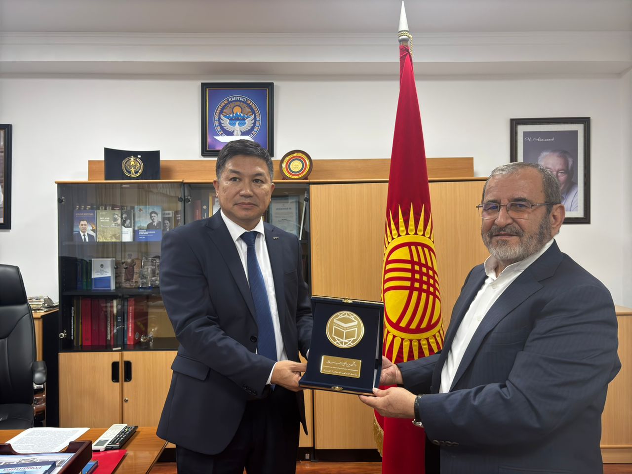 هیات اعزامی از ایران به ریاست فلاح‌زاده رئیس دانشگاه بین‌المللی مذاهب اسلامی با حضور در دانشگاه اسلامی قرقیزستان با عبدالشکور نارماتوف رئیس و مدیران این دانشگاه دیدار و گفت‌‌وگو کرد.