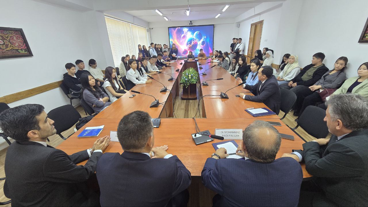 در این نشست که با حضور تالاس بک مشرپ اف؛ رئیس دانشکده، قاناتبیک توقتوبایف معاون دانشگاه و همچنین میرلان دیلدائف رئیس دانشگاه و هیات ایرانی حضور داشتند با اشاره به جایگاه و نقش ویژه دانشجویان در تحولات دنیای امروز، گفت: تبادلات علمی و فرهنگی بین ایران و قرقیزستان نشان می‌ د‌هد که رابطه دو کشور رابطه تمدنی و تاریخی است و ما با اسلام اعتدالی می‌توانیم روابط‌مان را قوی تر کنیم و با توسعه روابط می‌توانیم قدرت برتر شویم.
