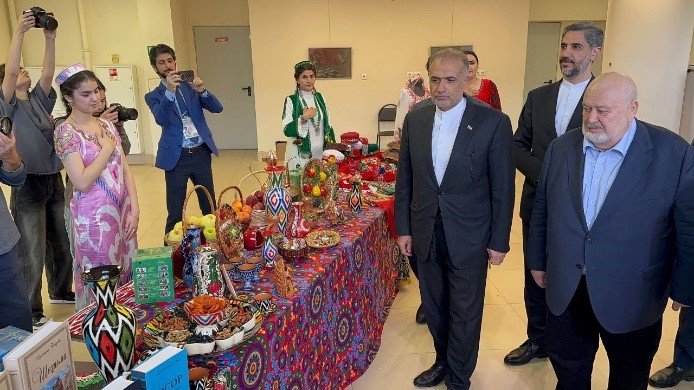 در حاشیه مراسم گرامیداشت دو هزار و 550 امین سالگرد اعلام اولین منشور حقوق بشر جهان نمایشگاه مشترک صنایع‌دستی و کتاب ایران و تاجیکستان برگزار شد. در بخش ایران این نمایشگاه مشترک فرهنگی و هنری صنایع دستی کشورمان مانند خاتم‌کاری، میناکاری و همچنین کتاب‌های نفیس مفاخر ادبی مانند شاهنامه و عکس‌هایی از آثار باستانی کشورمان در معرض دید بازدیدکنندگان قرار گرفت.