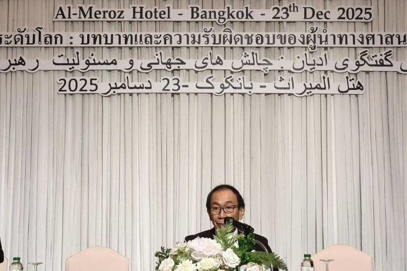 رئیس شورای مرکزی اسلامی تایلند در چهارمین نشست گفتوگوی ادیان با عنوان «چالشهای جهانی و مسئولیت رهبران و اندیشمندان دینی» به مسئله چالشهای جهانی و نقشها و مسئولیتهای رهبران دینی و علما در ایجاد راهحلهای مثبت اشاره کرد و گفت: رهبران دینی برای بحرانهای جهانی راههای امید میسازند.