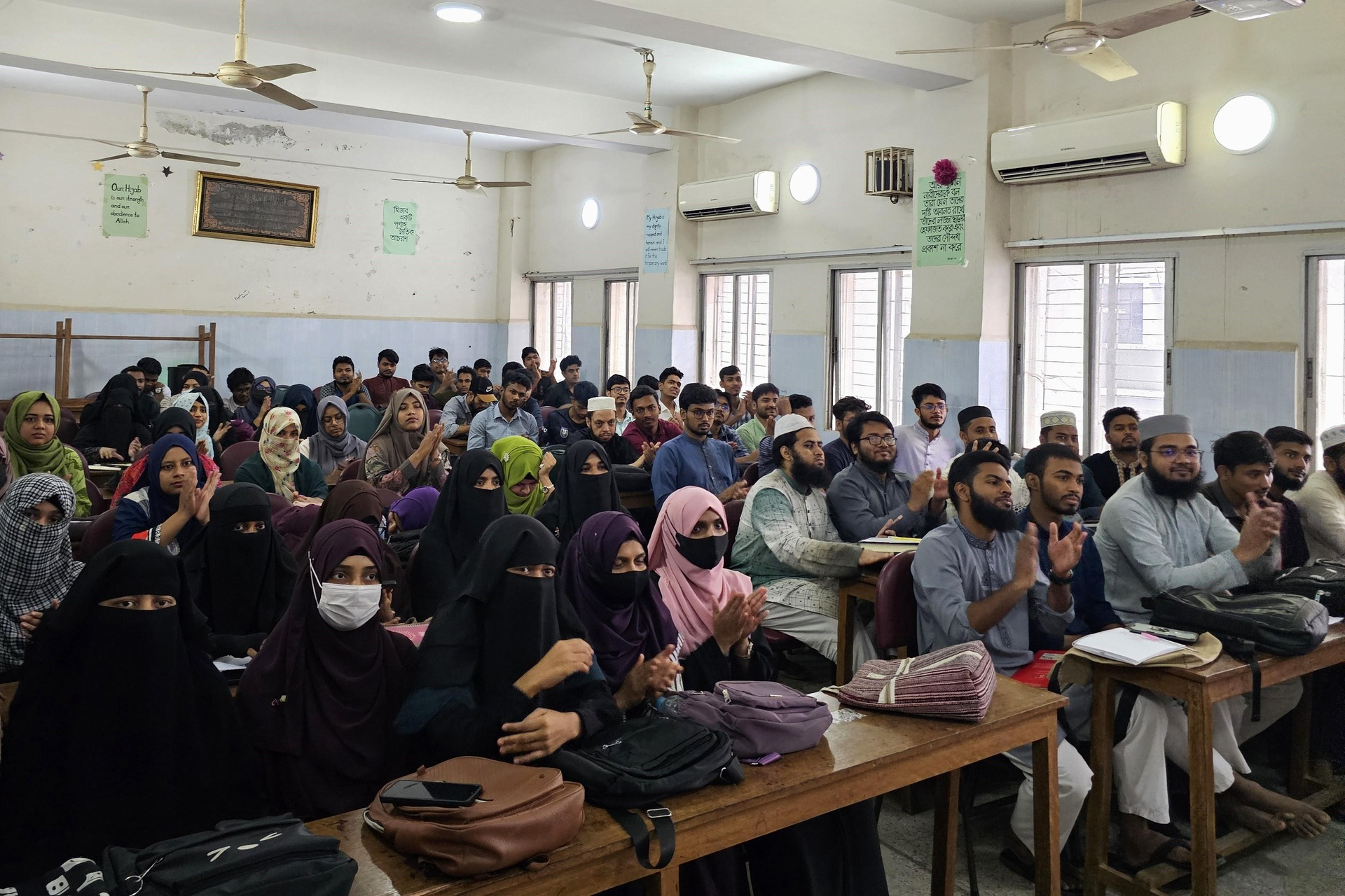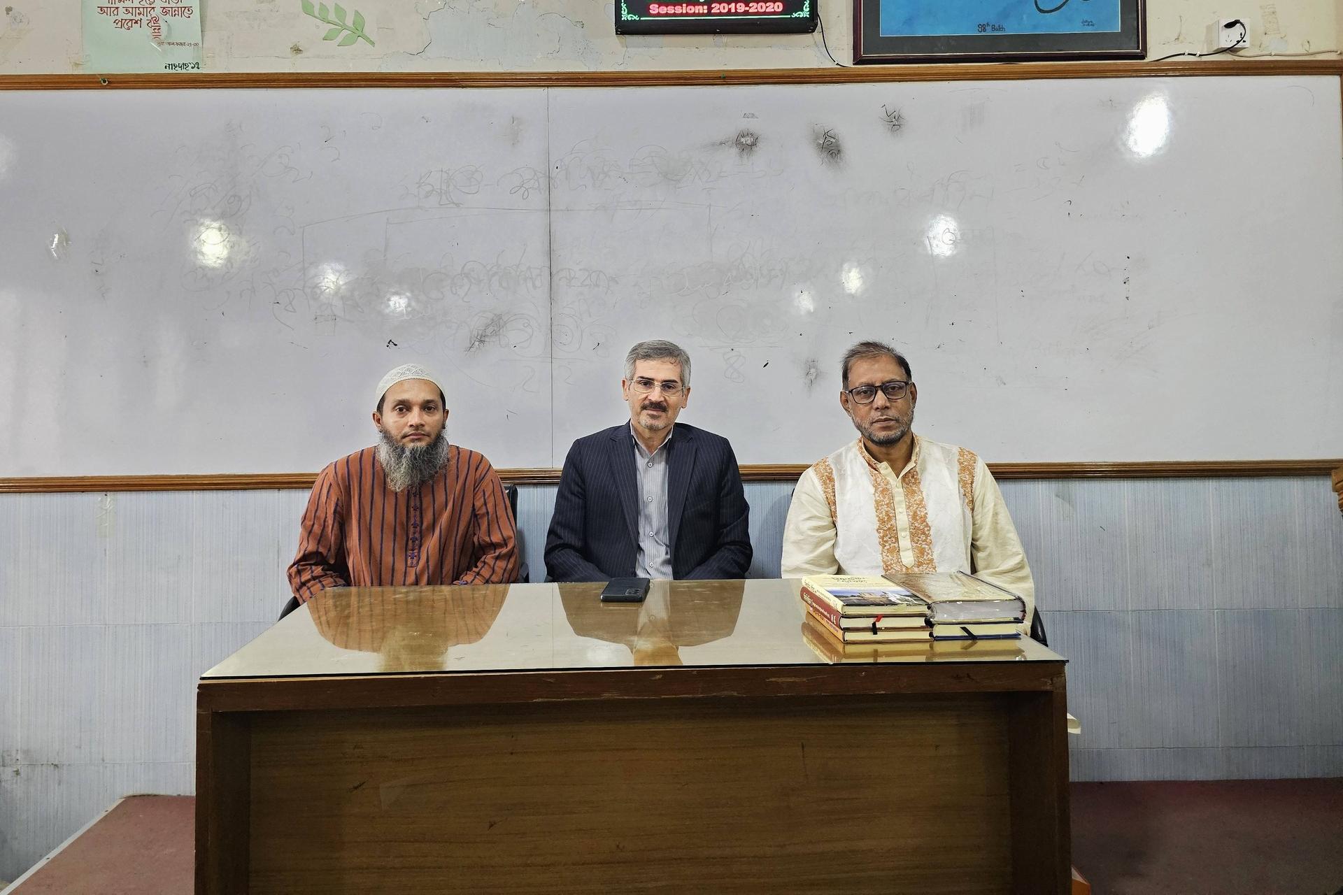 داکا - بنگلادش: سیدرضا میرمحمدی رایزن فرهنگی جمهوری اسلامی ایران در بنگلادش ضمن حضور در جمع دانشجویان گروه مطالعات اسلامی دانشگاه داکا در موضوع بررسی و تبیین ابعاد و پیامدهای جنگ تحمیلی 12 روزه به سخنرانی و ارائه بحث پرداخت.