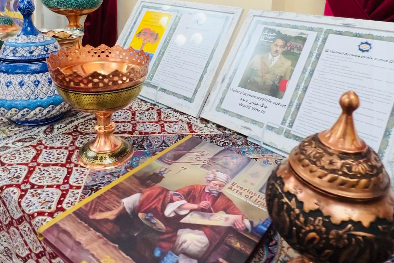 فرهنگستان علوم قزاقستان نیز در اقدامی متقابل، منتخبی از کتب خطی و قدیمی فارسی موجود در گنجینه خود را در معرض دید قرار داد. این مجموعه شامل دیوان‌های گران‌بهای شاعران نامی چون حافظ، سعدی و مولوی و کتاب‌های کهن آموزش زبان فارسی بود که عمق پیشینه و نفوذ زبان و ادبیات فارسی در این منطقه را به تصویر می‌کشید.