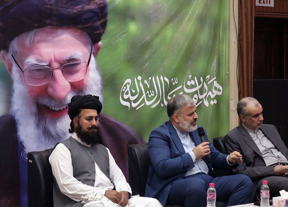 به گزارش روابط عمومی سازمان فرهنگ و ارتباطات اسلامی، همایش علمی «نگاهی به اندیشه حمکرانی حضرت امام خامنهای» با حضور اکبر عیسیزاده سرکنسول و سعید طالبینیا مسئول خانه فرهنگ کشورمان، آیتالله غلامعباس رییسی مدیر حوزه علمیه امام خمینی(ره)، صابر ابومریم دبیرکل بنیاد فلسطین پاکستان، طلعت عایشه وزارت تحلیلگر بینالمللی، مولانا محمودالحسن الحسینی از علمای دیوبندی، مولانا نقی هاشمی تحلیلگر تلویزیون و فضای مجازی، معراج الهدی صدیقی و اسدالله بوتو از رهبران حزب جماعت اسلامی، سید ظفر اقبال و عبدالصمد میمن از رهبران مرکز اهل سنت منهاج القرآن و دهها نفر از طلاب و دانشجویان در سالن آمفی تئاتر خانه فرهنگ جمهوری اسلامی ایران در کراچی برگزار شد.