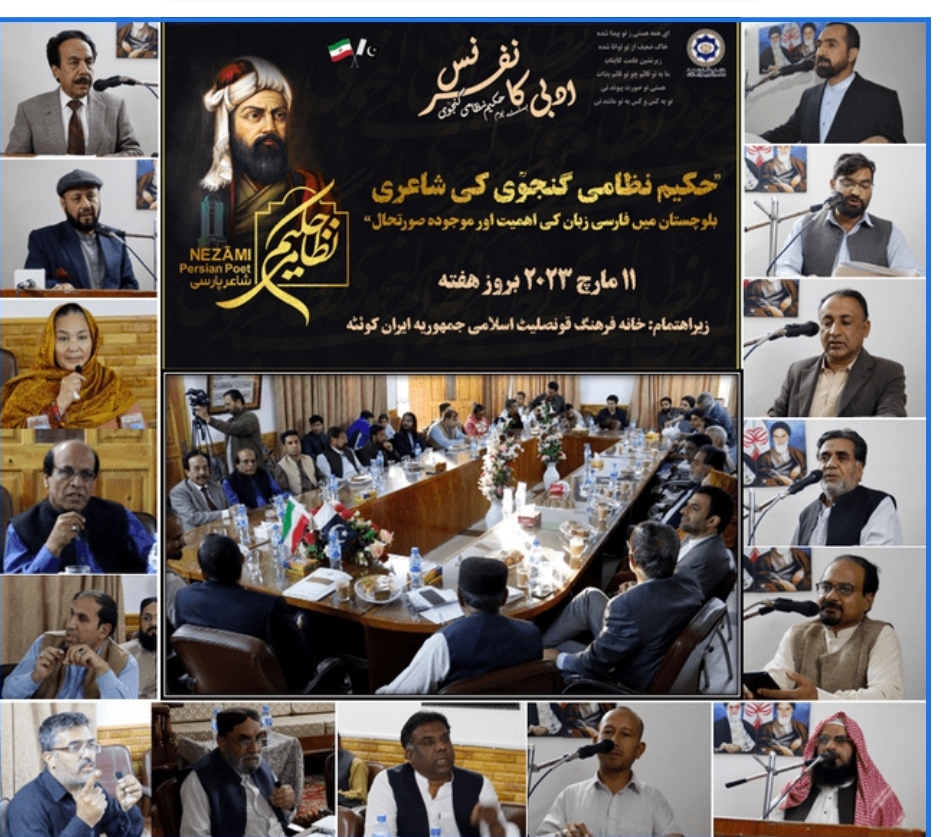 به گزارش روابط عمومی سازمان فرهنگ و ارتباطات اسلامی ،به مناسبت هفته بزرگداشت حکیم نظامی گنجوی شاعر بزرگ پارسی قرن ششم و معرفی بیشتر این شاعر پرآوازه ایران فرهنگی همایشی به این منظور و البته با هدف آسیب شناسی مطالعات ایرانی و وضعیت زبان فارسی و آموزش آن در ایالت بلوچستان پاکستان با حضور اساتید زبان و ادبیات فارسی و فرهیختگان علمی و ادبی کویته روز شنبه 20/12/1401 در سالن همایشهای خانه فرهنگ ج.ا.ایران در کویته برگزار شد.