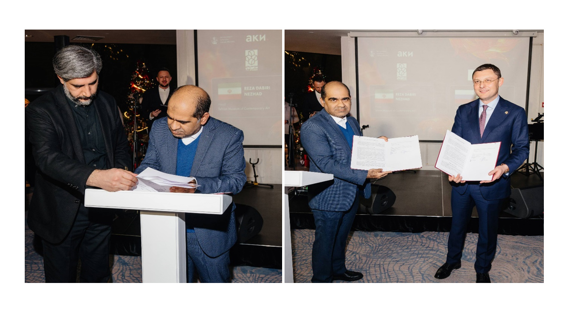 تفاهم­نامه همکاری در حوزه فرهنگی و آموزشی، علمی و خلاقانه توسط رضا دبیری‌­نژاد مدیر موزه هنرهای معاصر تهران و واسیلی زورابویچ سرتلی مدیر موزه معاصر مسکو امضا شد.